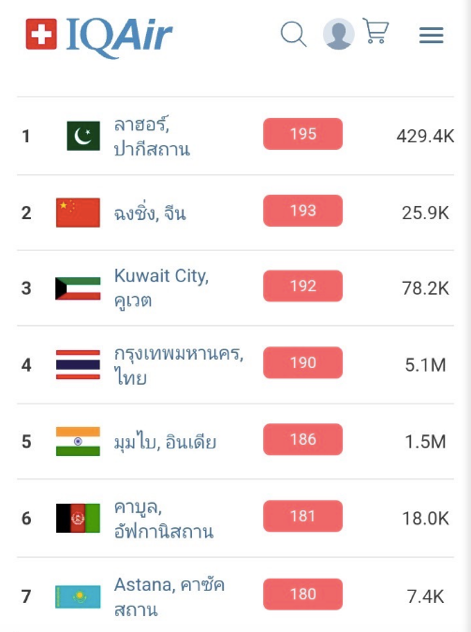 หลายปีที่ผ่านมา หากอ้างอิงตามมาตรฐานดัชนีคุณภาพอากาศ (AQI) แล้ว น่าตกใจว่ามีบ่อยครั้งที่ประเทศเราติดอัน 1 ใน 5 ของประเทศที่มี ‘คุณภาพอากาศแย่ที่สุดในโลก’ โดยเฉพาะในหลายจังหวัดที่เป็นเขตเศรษฐกิจ เช่น กรุงเทพมหานคร เชียงใหม่ ขอนแก่น รวมถึงเมืองท่องเที่ยวอีกหลายแห่ง จะพบว่ามีหลายวันที่คนไทยต้องเผชิญฝุ่นพิษ PM2.5 ในระดับหฤโหด จนรัฐบาลต้องออกคำเตือนให้ผู้คนสวมหน้ากากป้องกันฝุ่น รวมทั้งขอความร่วมมือให้ชาวเมืองลดการเดินทางและให้ work from home เท่าที่เป็นไปได้